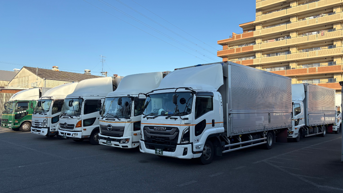 2t車~大型車まで大小様々なトラックを保有。自社走行にこだわり、品質の高いチャーター輸送に強みを持っています。